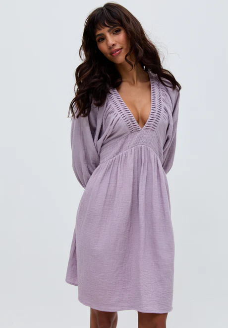Purple Ruffled V-Neck Mini Dress